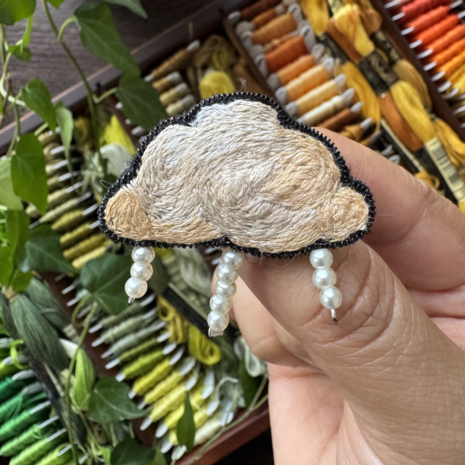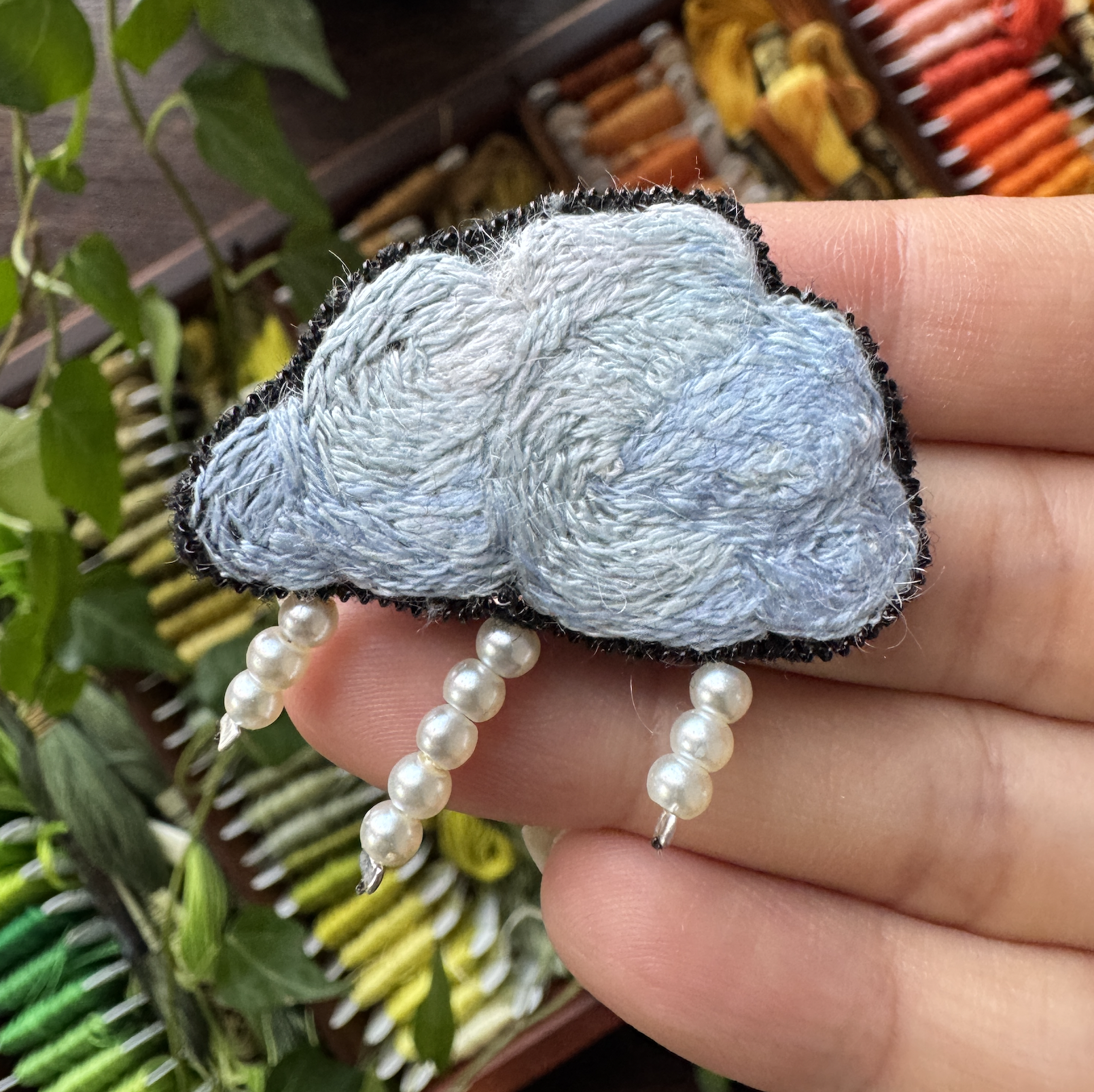 Des nuages élégants brodés à la main, embellis de perles.